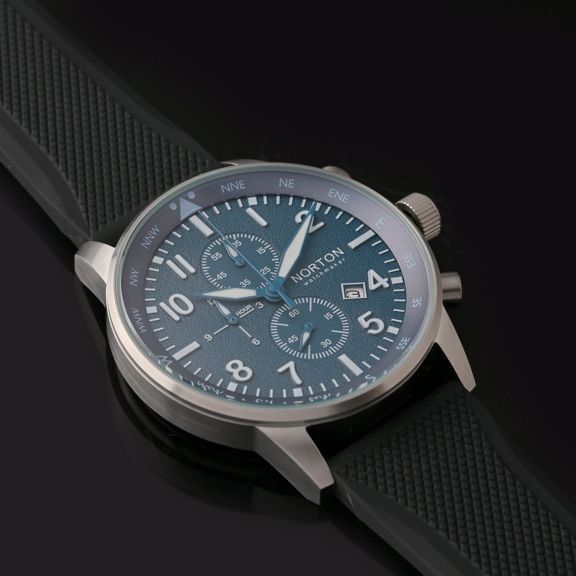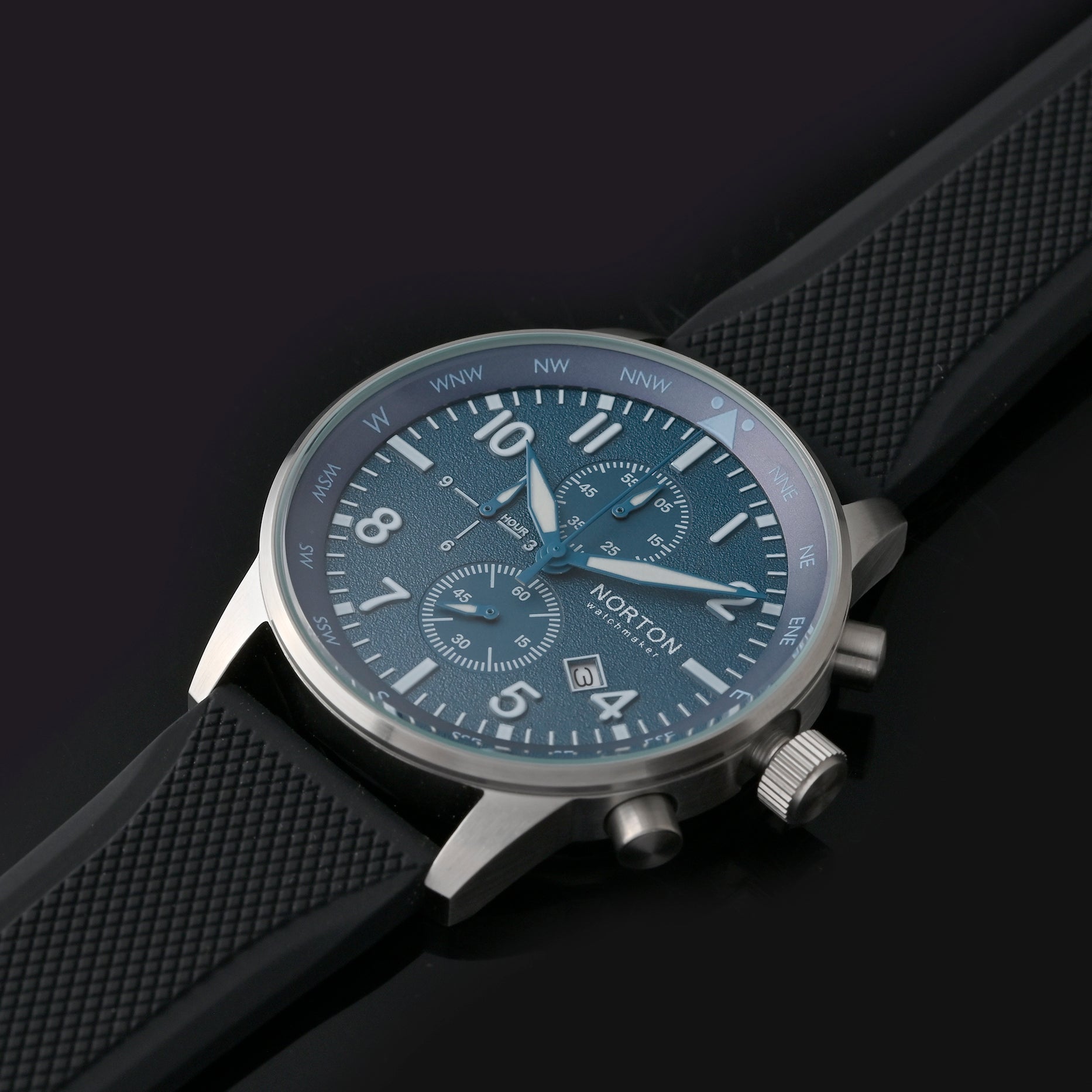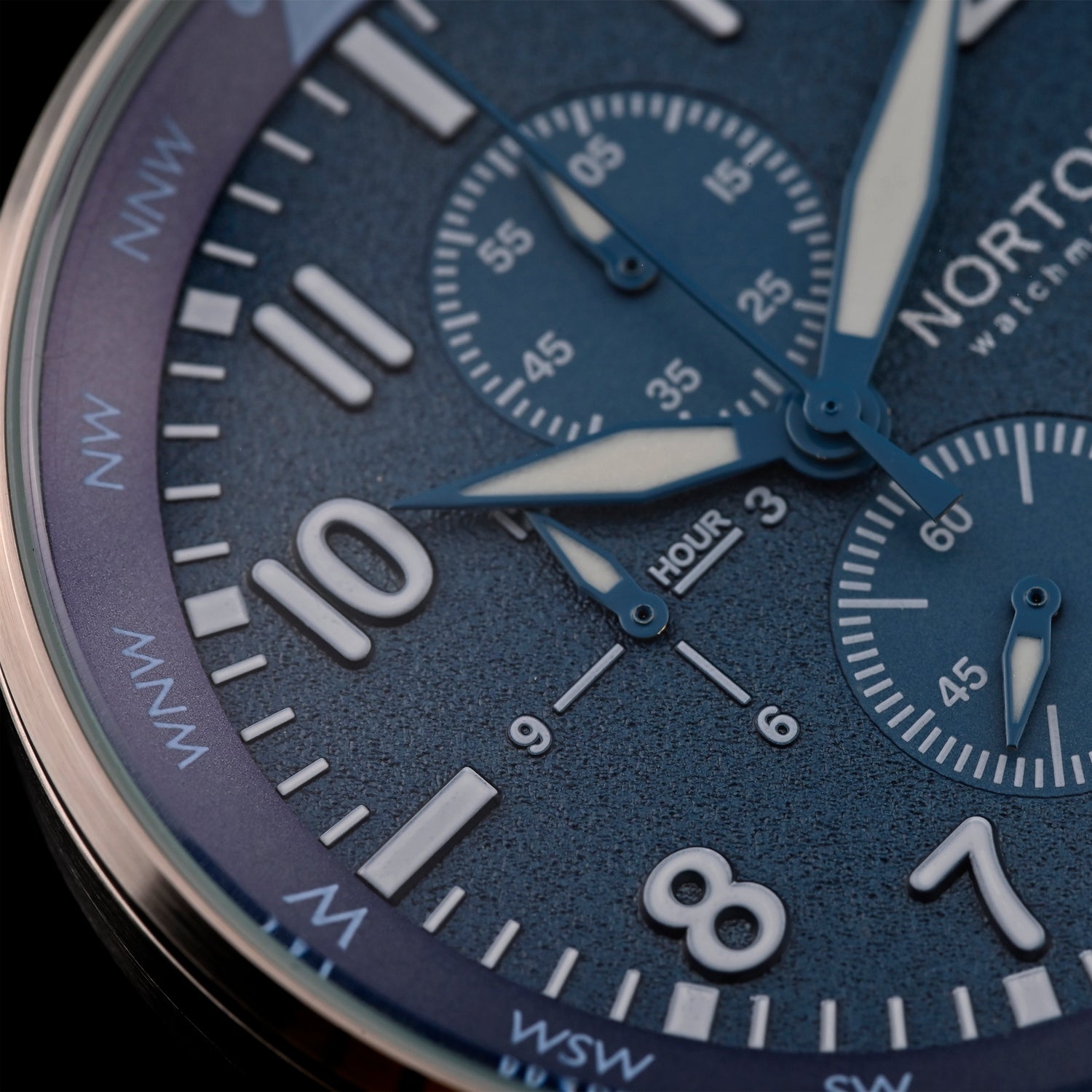 Quadrante tecnico con finitura sabbiata e funzione cronografo