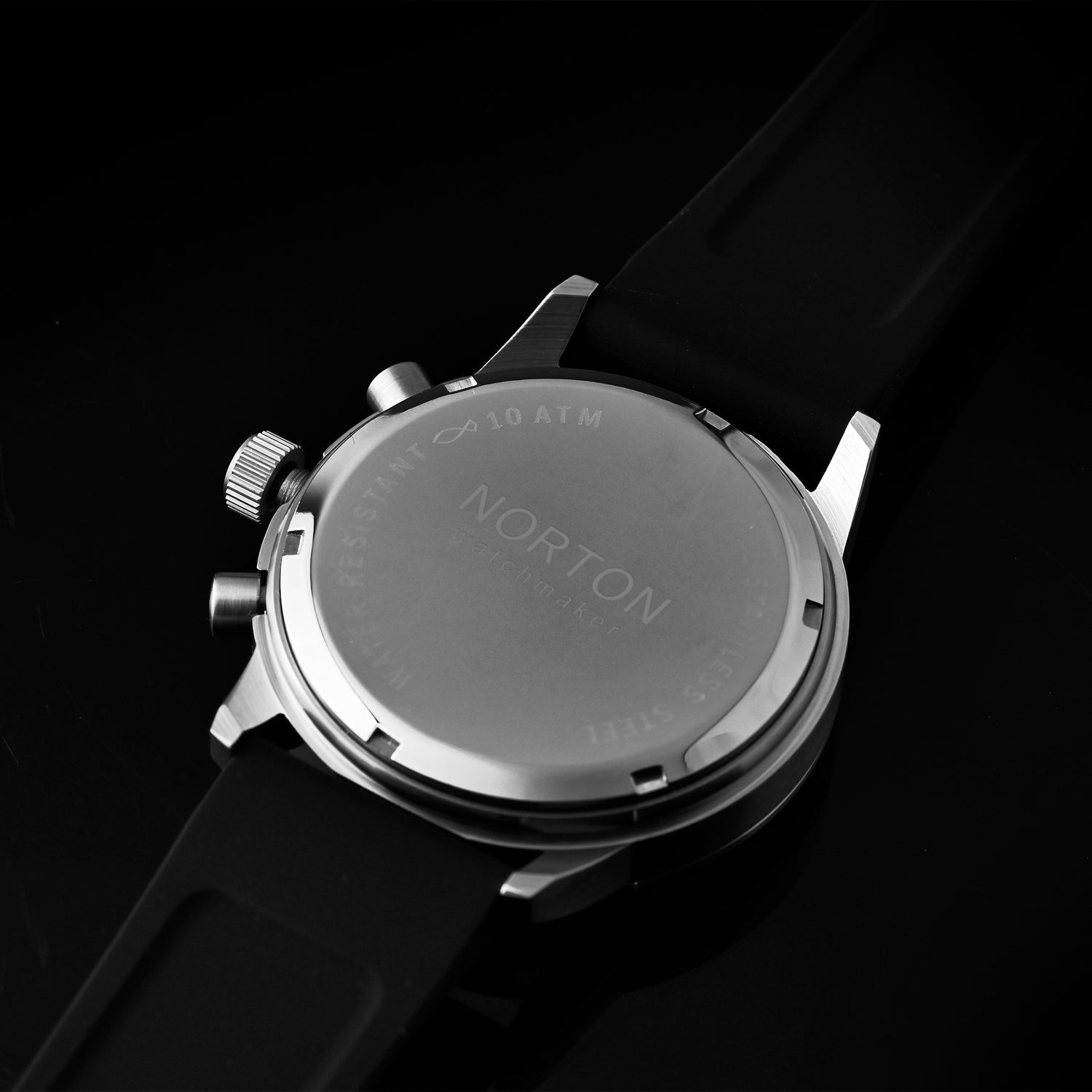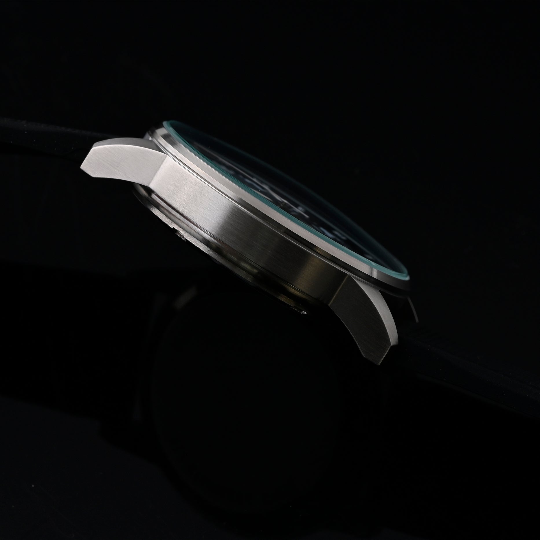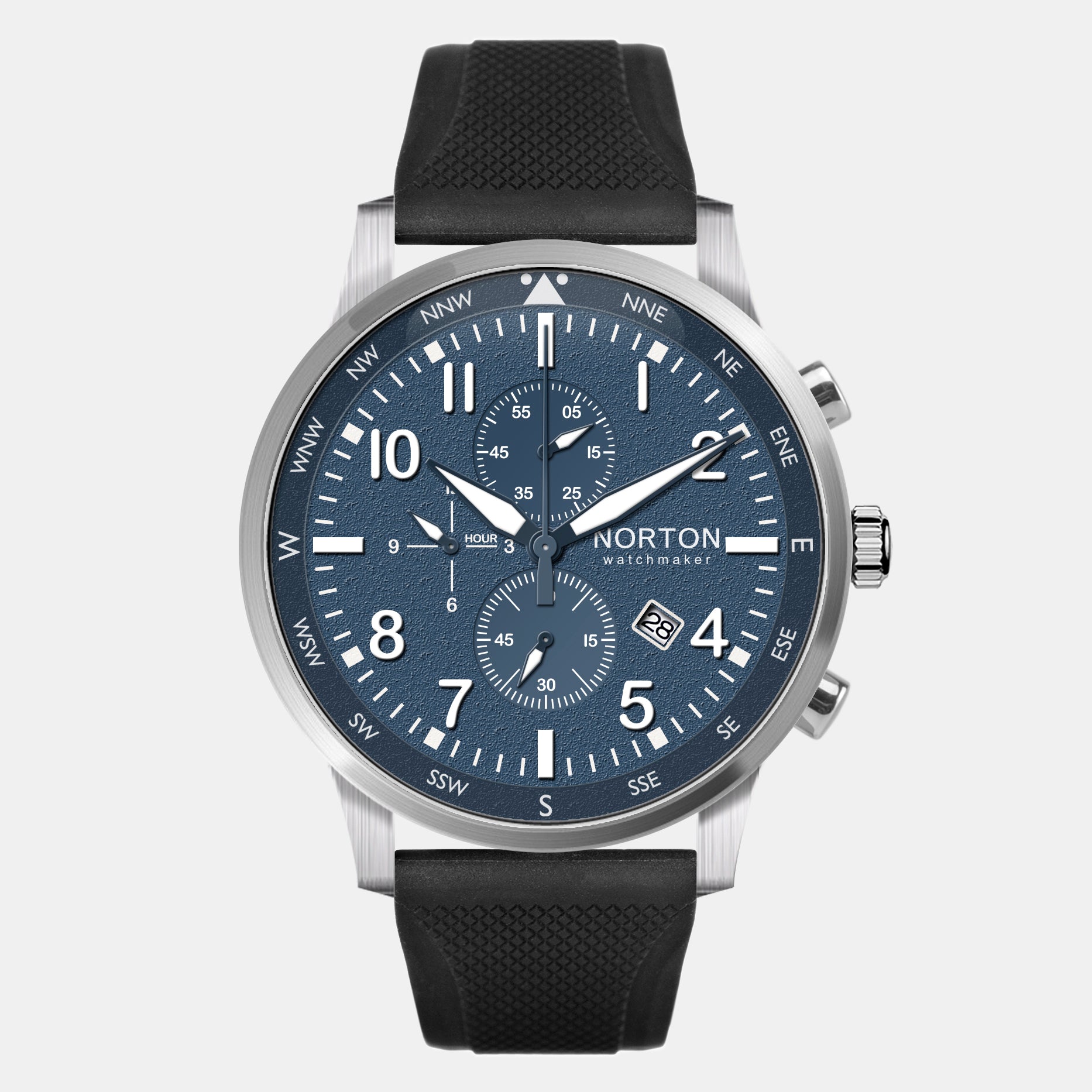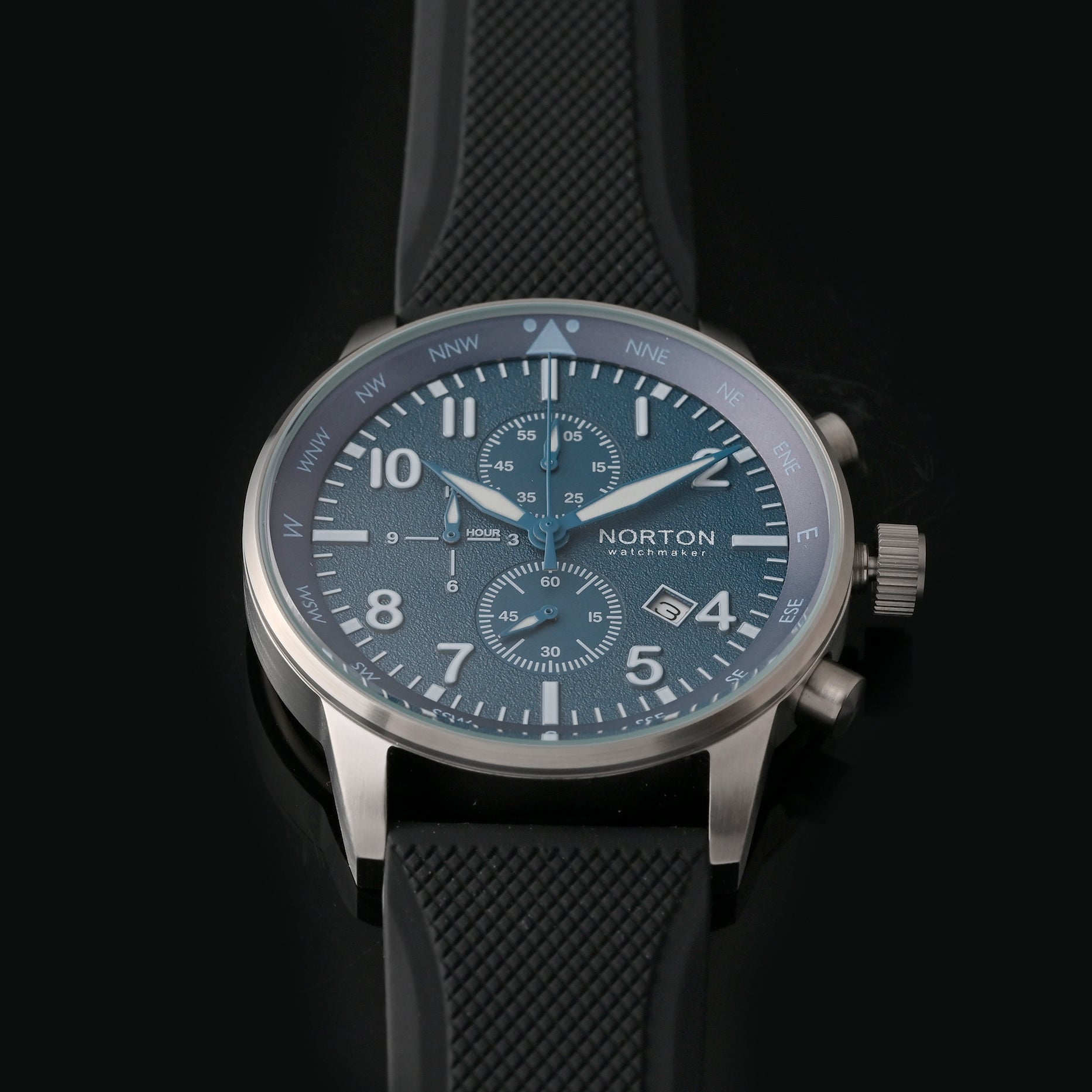Quadrante tecnico con finitura sabbiata e funzione cronografo