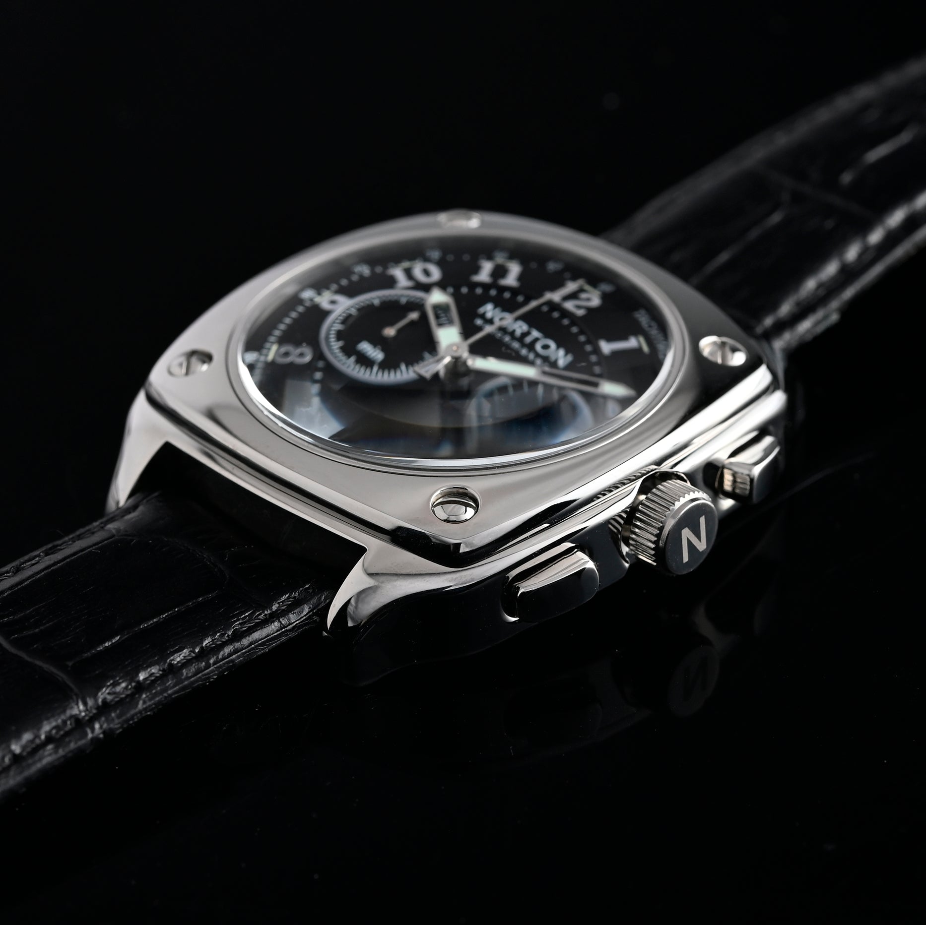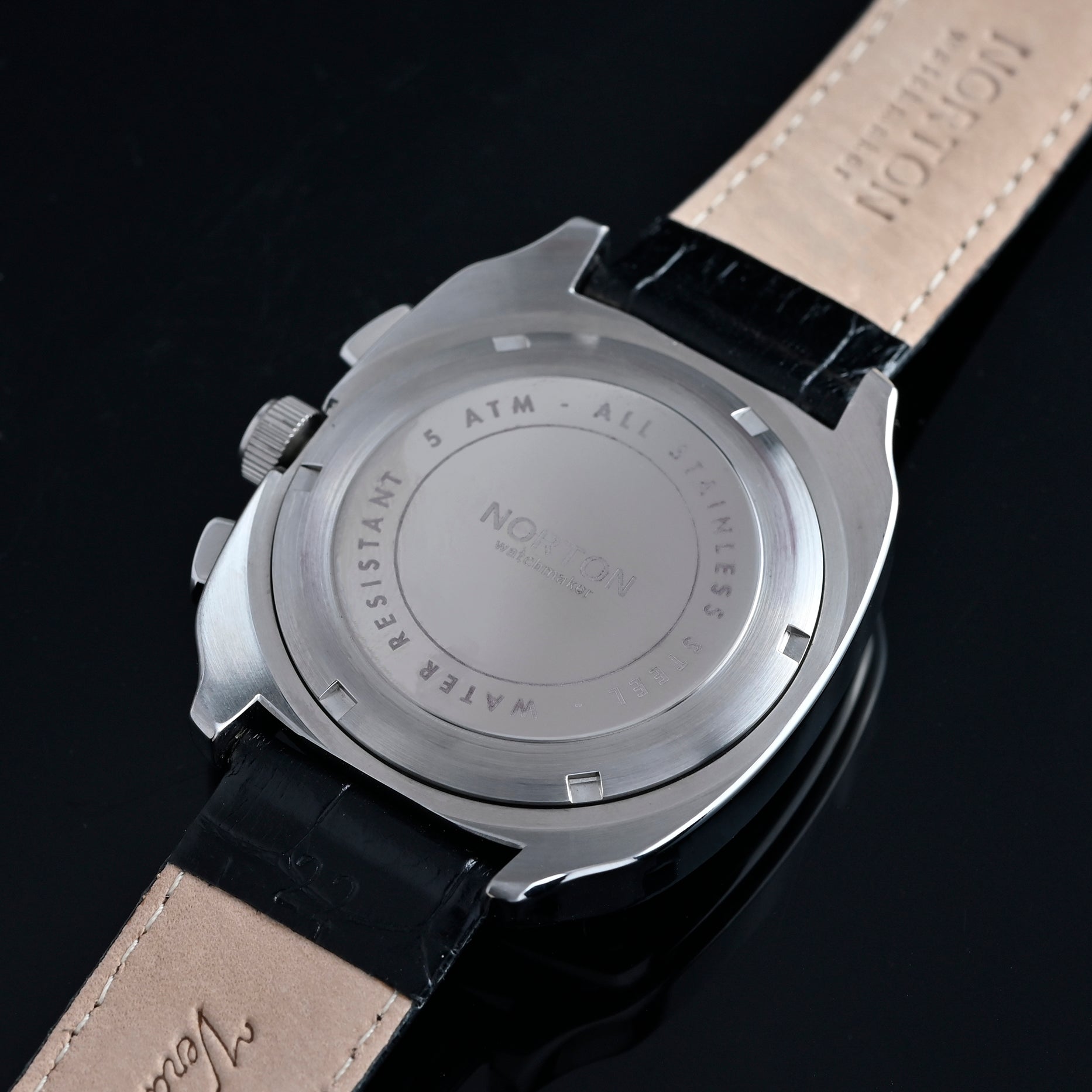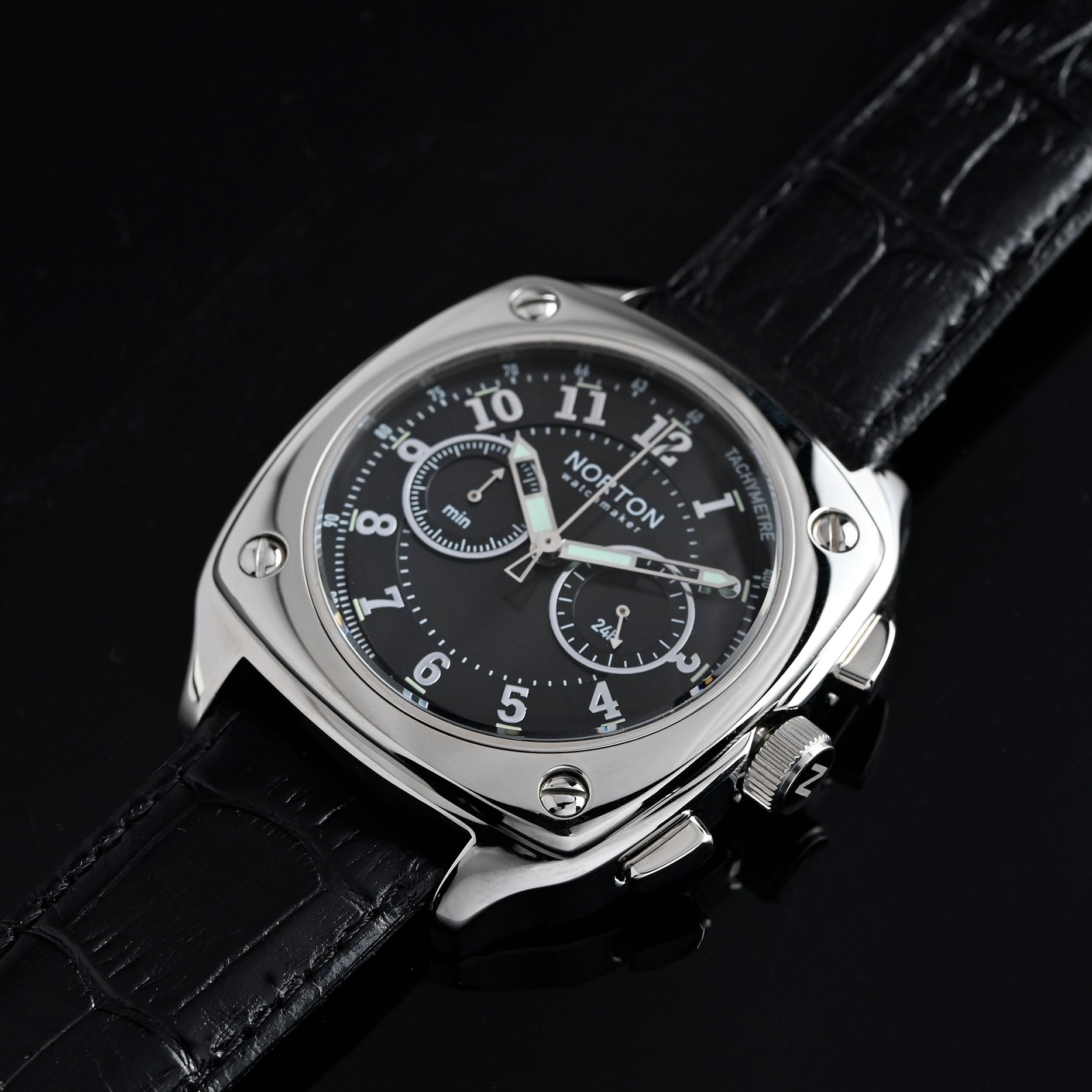 Cronografo dal design originale, con cassa dalla forma esclusiva: non quadrata, non tonda, ma unica nel suo genere. Il doppio contatore sul quadrante dona equilibrio e carattere, mentre il cinturino in vera pelle assicura comfort ed eleganza. Un segnatempo che unisce stile raffinato e funzionalità.