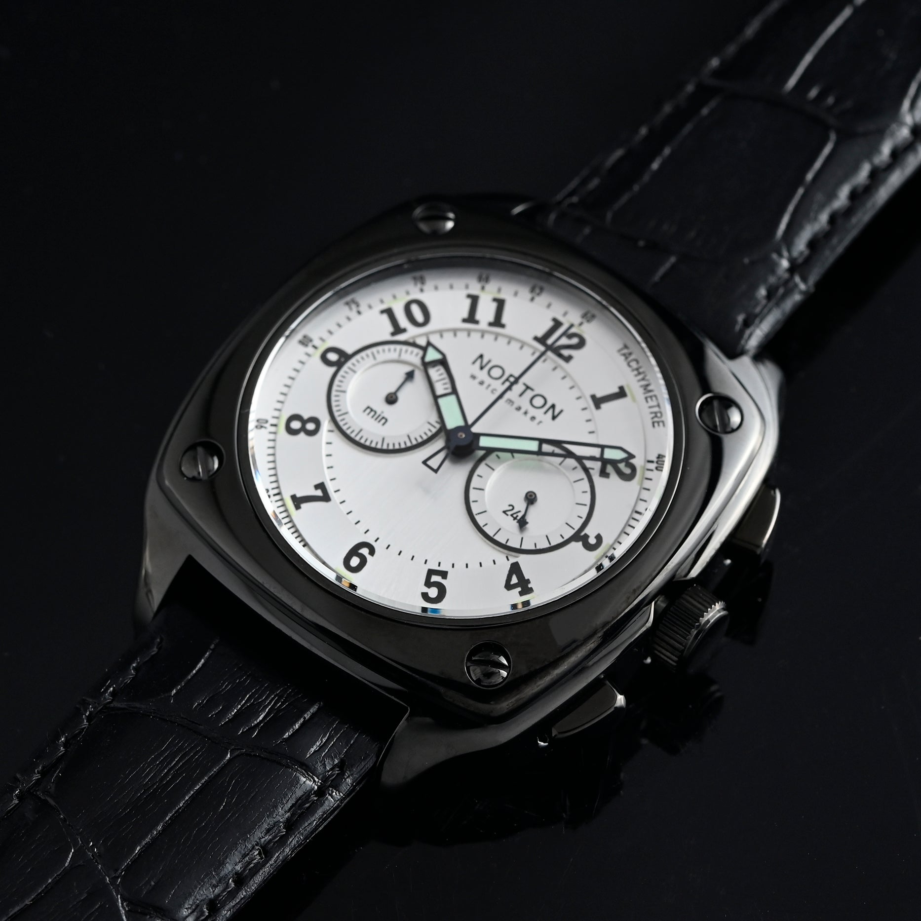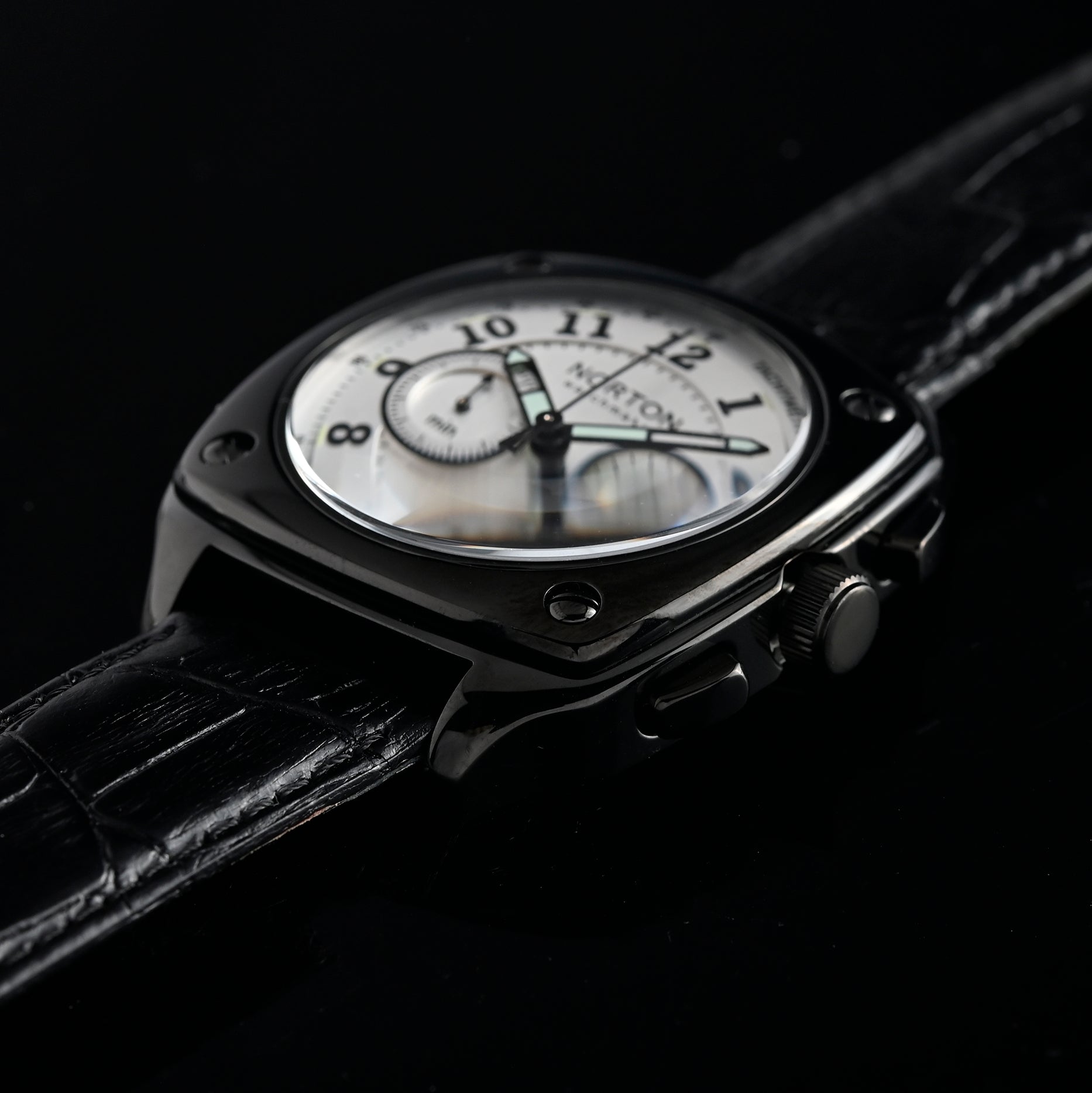 Cronografo dal design originale, con cassa dalla forma esclusiva: non quadrata, non tonda, ma unica nel suo genere. Il doppio contatore sul quadrante dona equilibrio e carattere, mentre il cinturino in vera pelle assicura comfort ed eleganza. Un segnatempo che unisce stile raffinato e funzionalità.