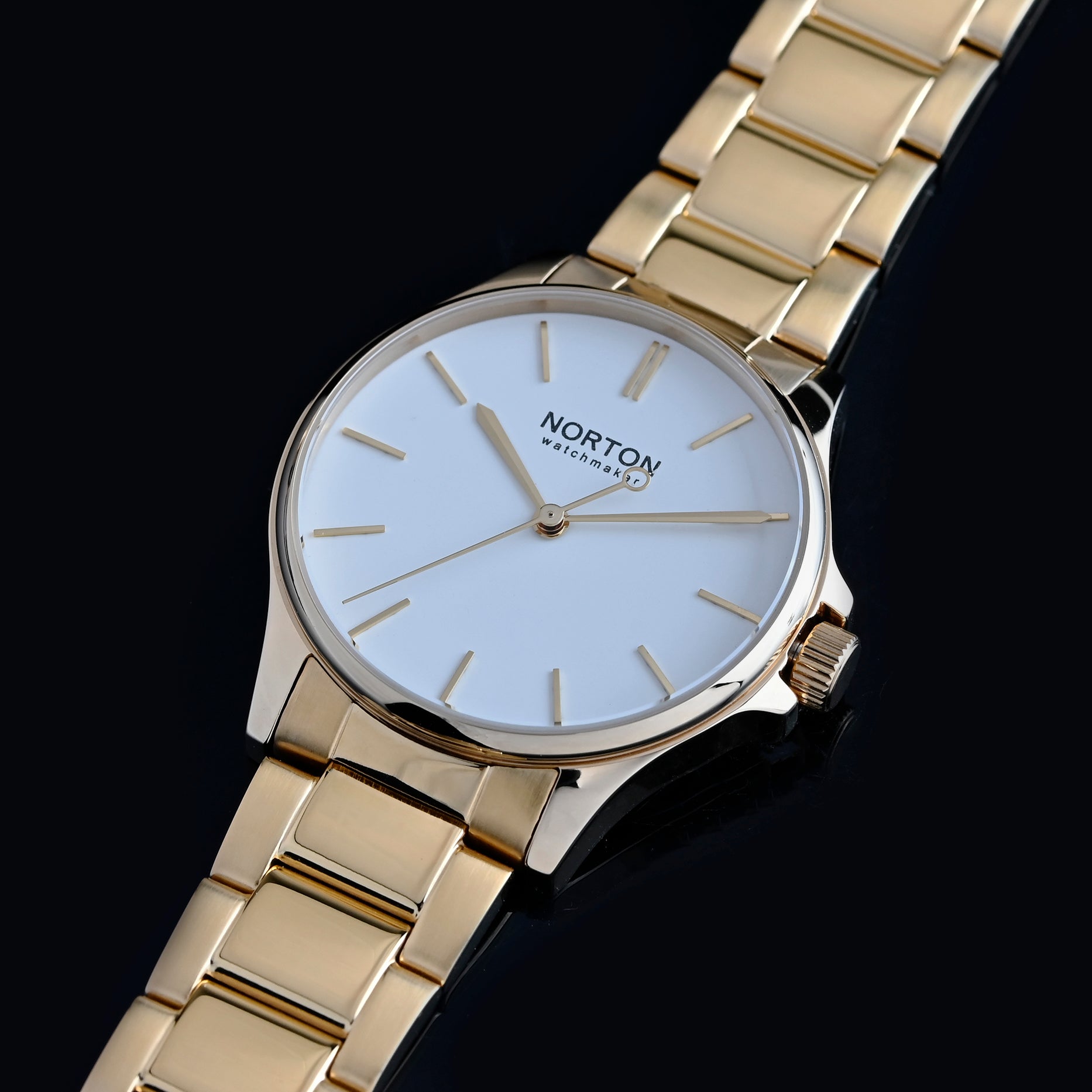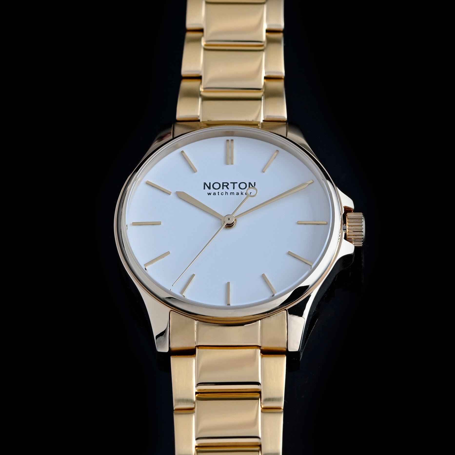 Orologio da donna con bracciale color oro, dal design raffinato e luminoso. Un accessorio elegante che unisce stile senza tempo e praticità quotidiana, perfetto per valorizzare ogni look.