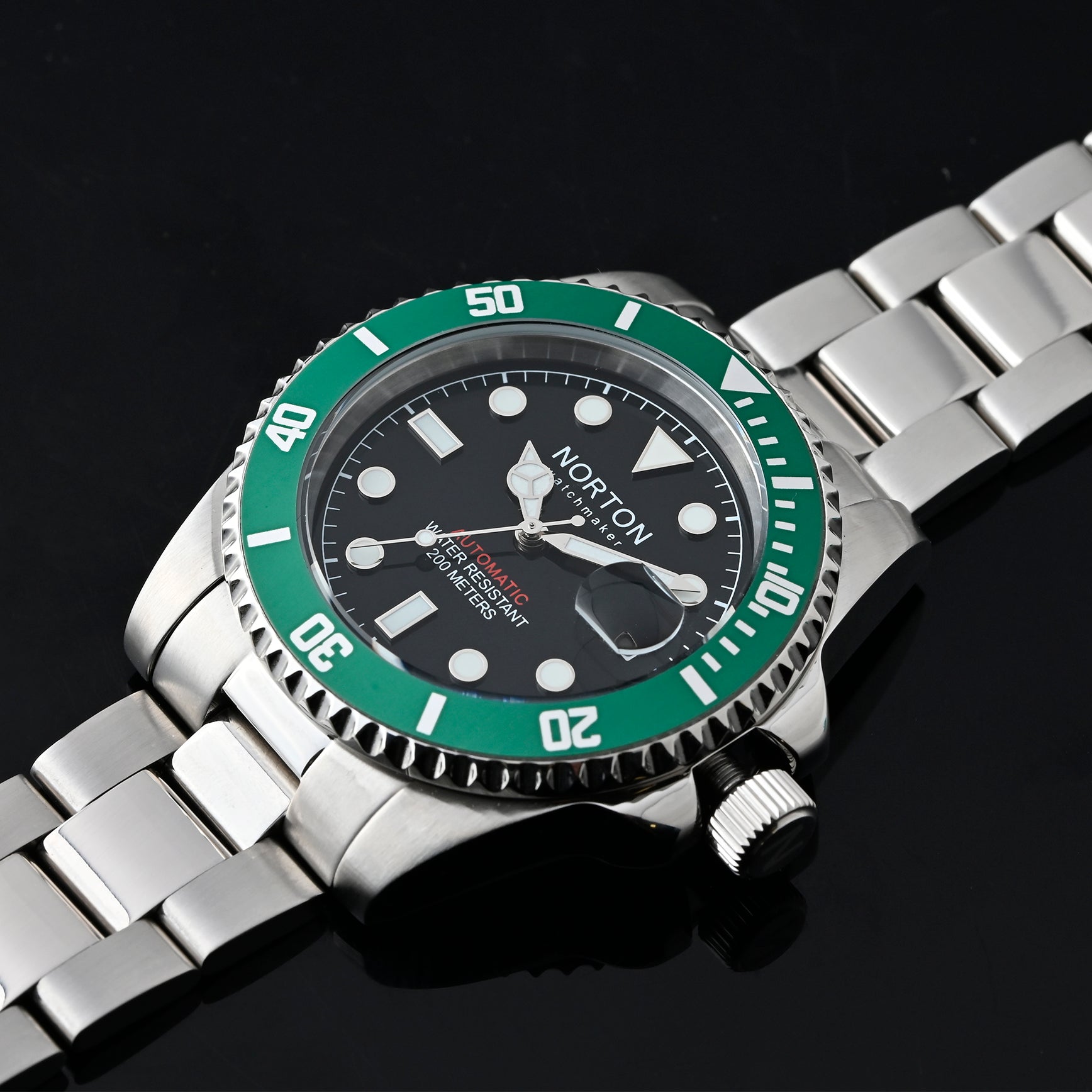 Marea è un diver da 40 mm in acciaio inossidabile, nato dall’incontro tra forza e profondità. Impermeabile fino a 200 metri (20 ATM), è dotato di ghiera unidirezionale a 120 click, corona e fondello a vite per garantire massima sicurezza e affidabilità. Al suo interno batte il movimento automatico Miyota 8215, sinonimo di precisione, robustezza e continuità nel tempo.