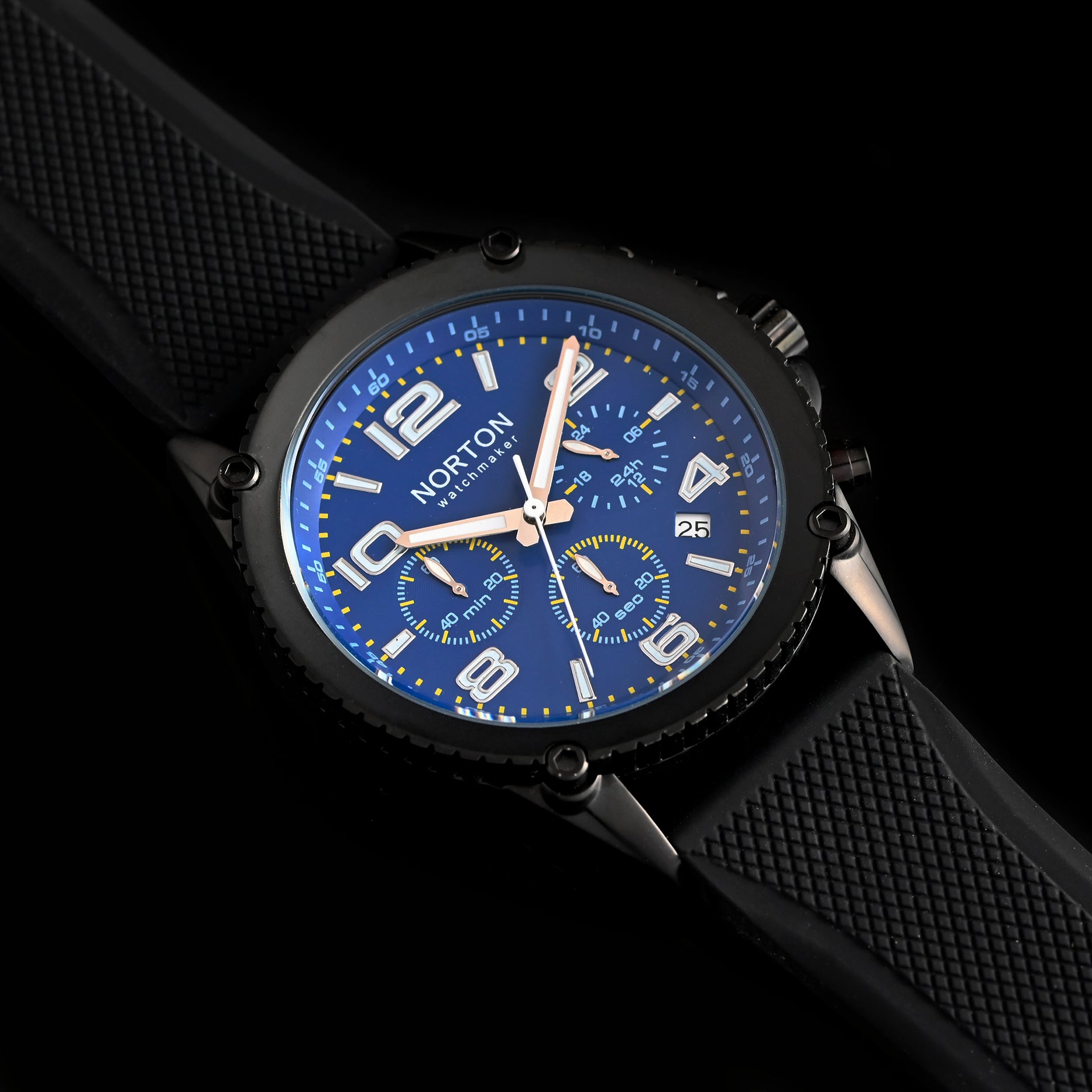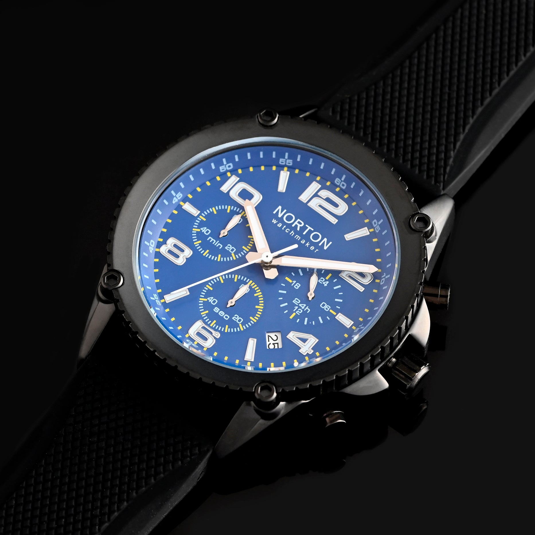 Robustezza, precisione e stile si incontrano in questo cronografo ispirato al mondo militare. Progettato per affrontare ogni sfida, combina un design deciso con funzionalità professionali.